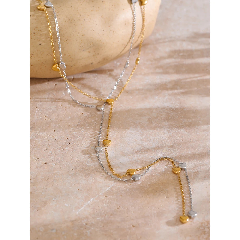 Yhpup Minimalist 316L Stainless Steel Heart Love Chain Long Drop Necklace Summer Holiday Beach Wear Charm Jewelry